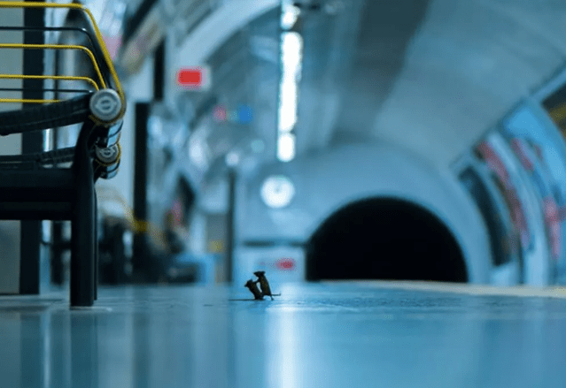 O fotógrafo Sam Rowley ganhou o prêmio Wildlife Photographer of the Year: Lumix people’s choice award (eleito pelo público), com a foto de dois camundongos brigando em uma plataforma de metrô em Londres.