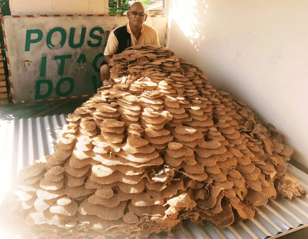 Moradores de Itaóca, no interior de São Paulo, foram surpreendidos ao realizar uma limpeza em uma residência na área rural da cidade. Eles encontraram um ninho gigante de vespas, de aproximadamente dois metros de largura e 90 centímetros de altura, e pesando aproximadamente 15kg. Os moradores fizeram um mutirão para retirar a estrutura, que já estava desocupada, do local.